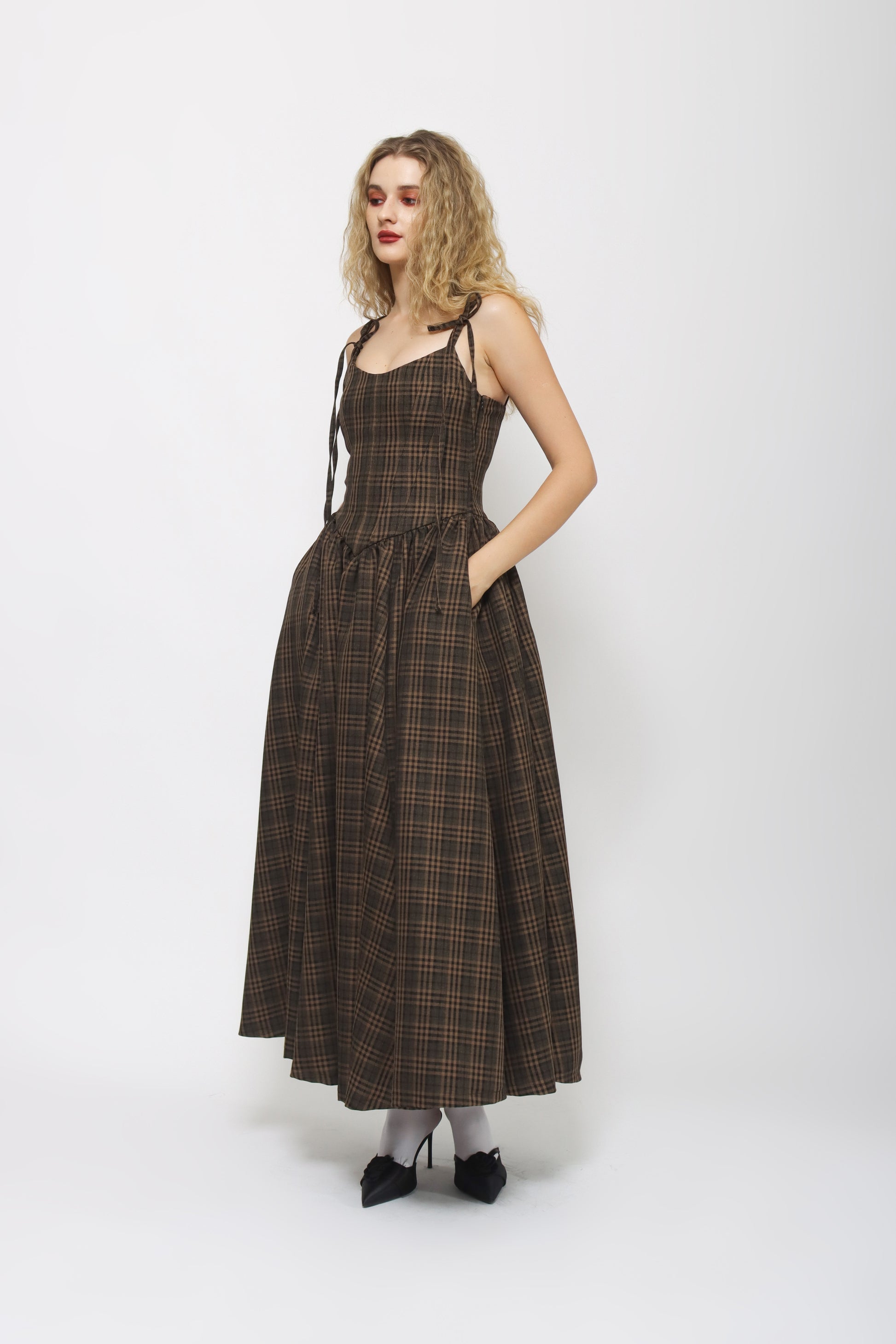 Starry - Vessara Dress in Brown Plaid [PRE-ORDER]